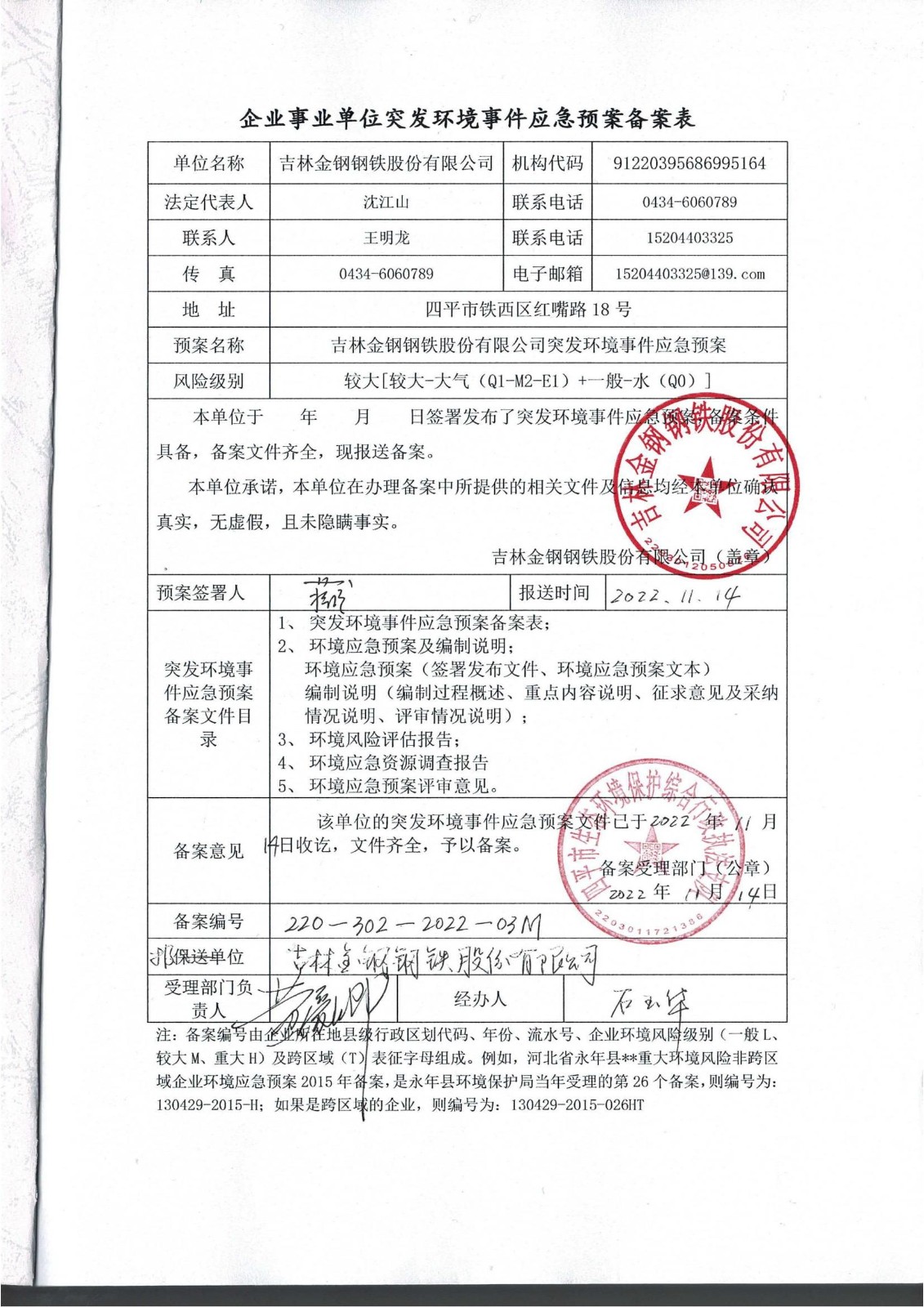 2022年突發環境事件應急預案公示